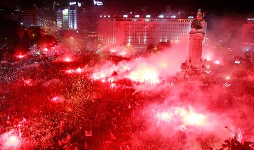 Num sorriso celestial de Eusébio e Coluna, a nação tingiu-se de vermelho, tantos foram aqueles que saíram à rua. A confirmação do óbvio: o Benfica já é muito maior do que o próprio país e extravasa os festejos dos títulos além fronteiras. Inteiramente merecido, para um presidente que manteve a confiança cega num contestado treinador, para um grupo de trabalho unido e de qualidade, para os milhões de adeptos que festejam como se não houvesse amanhã, como se ganhassem 3 ou 4 campeonatos seguidos, pois sabem que o Benfica não tem a chave daquele supermercado onde se compram títulos.